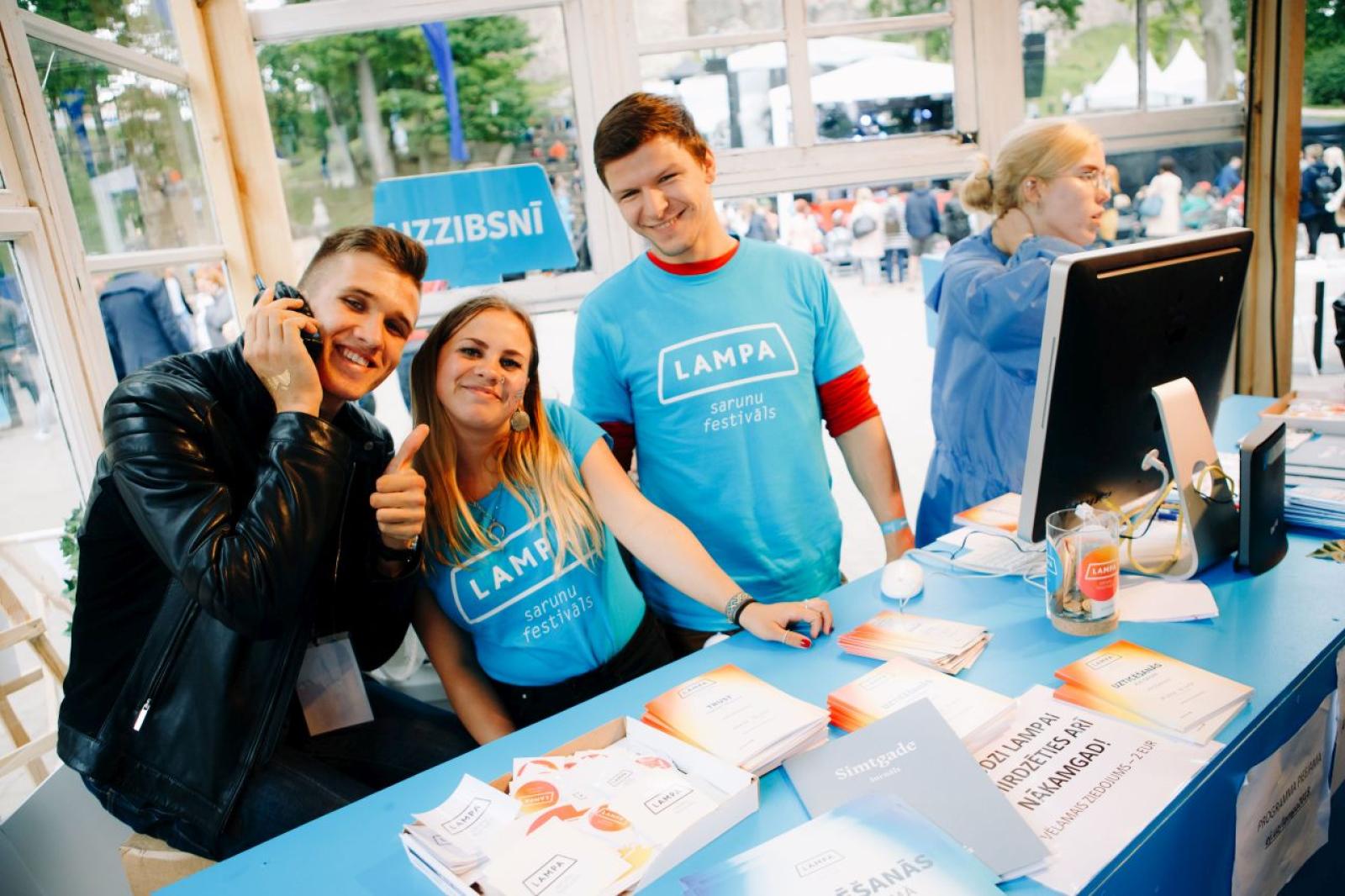 Meklējam 90 aizrautīgus cilvēkus –festivāla brīvprātīgos palīgus, kuri palīdzētu LAMPAI būt vēl spožākai un šovasar, 28. un 29. jūnijā, Cēsīs pieredzēt divas neaizmirstamas un iespaidiem bagātas dienas. Būt daļai no Sarunu festivāla LAMPA nozīmē ne tikai pieredzēt festivālu no tā tapšanas aizkulisēm, bet pats galvenais – arī satikt un veidot sarunas ar daudziem patiesi interesantiem cilvēkiem.